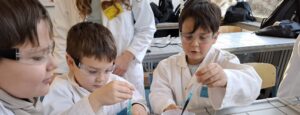 An jeweils zwei Tagen können die Kinder der 3. und 4. Klassen in diesem Jahr das Teutolab-Chemie-Projekt an der Geschwister-Scholl-Realschule besuchen. Die Bären-Klasse 3b durfte gestern den Anfang machen. Von einigen Schülerinnen und Schülern der 10. Klassen der Geschwister-Scholl-Realschule wurden wir durch die verschiedensten Experimente rund um das Thema „Milch“ geführt. Dabei haben die Kinder der Klasse 3b so einiges mit großem Staunen gelernt.