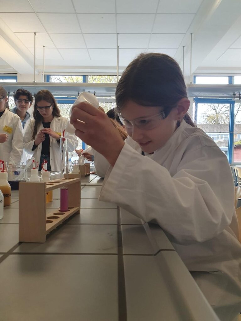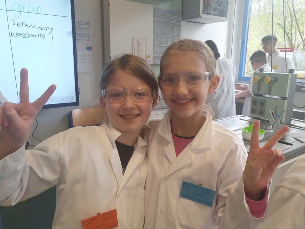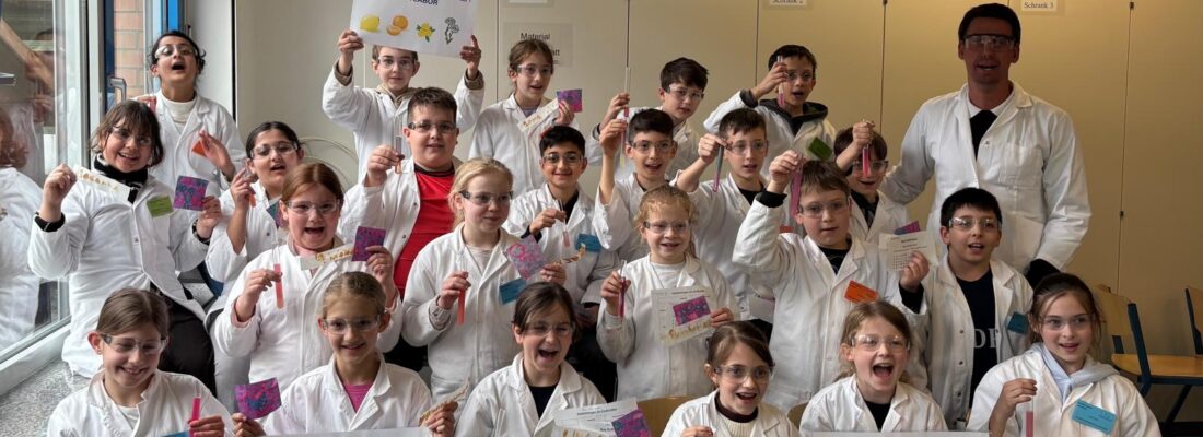 An jeweils zwei Tagen können die Kinder der 3. und 4. Klassen in diesem Jahr das Teutolab-Chemie-Projekt an der Geschwister-Scholl-Realschule besuchen. Die Bären-Klasse 4b durfte nun im März zum Teutolab. Von einigen Schülerinnen und Schülern der 10. Klassen der Geschwister-Scholl-Realschule wurden sie durch die verschiedensten Experimente rund um das Thema „Zitrone“ geführt. Dabei haben die Kinder der Klasse 4b so einiges mit großem Staunen gelernt.